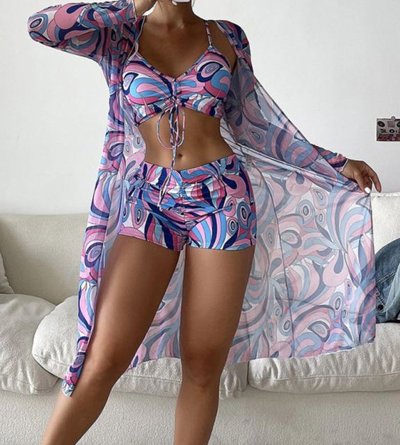 Split three-piece high waist long-sleeved ins blouse drawstring bikini