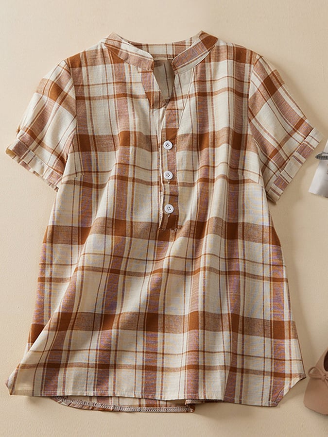 Solid Color Cotton Linen Short Sleeve Lapel Shirt